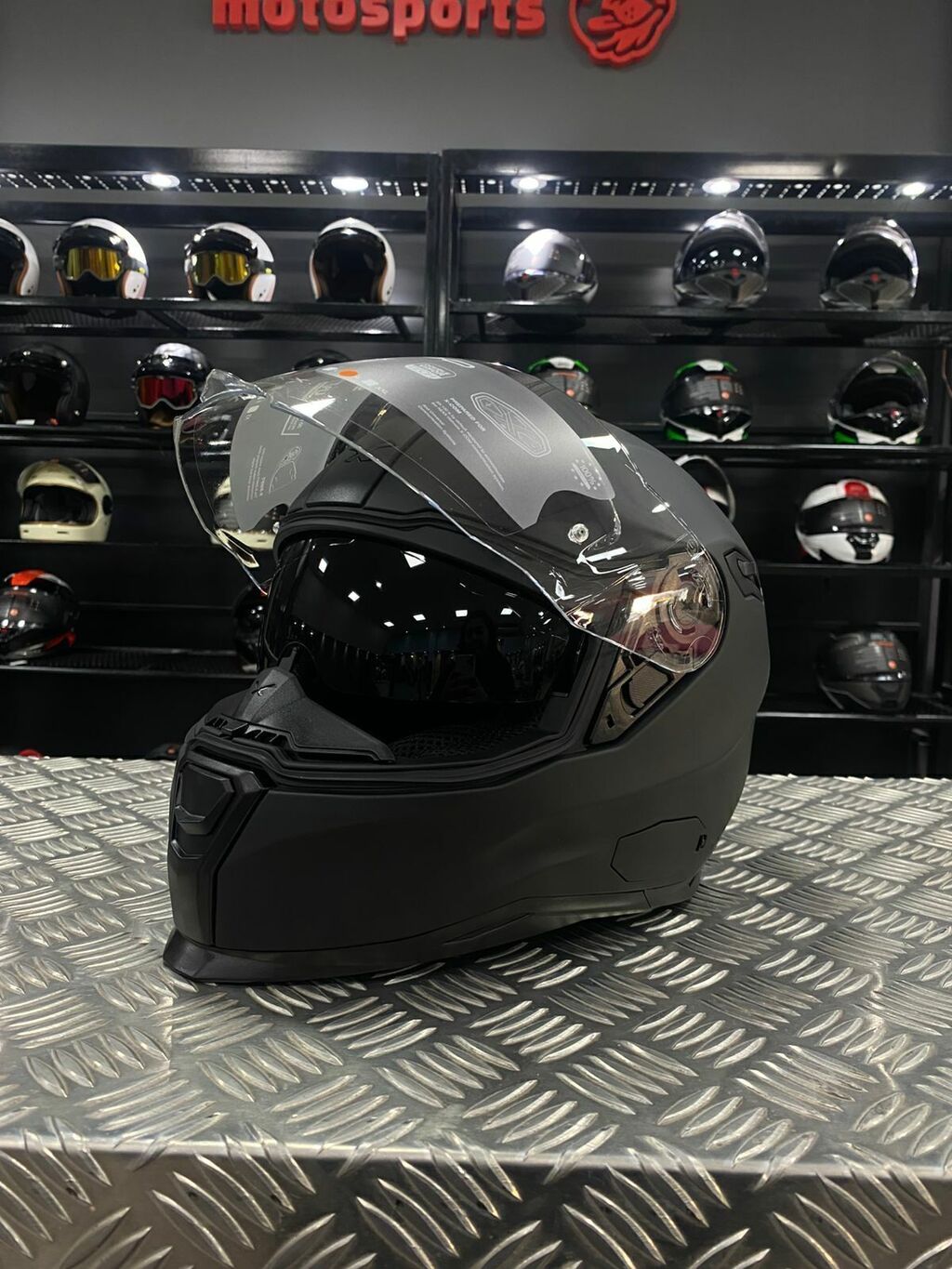 El campo de visión del SX.100 es extremadamente amplio y ofrece una sensación de mayor apertura dentro del casco, una sensación de libertad total, ideal para la conducción urbana. La visera es de clase óptica 1, anti rayas y preparada para el uso de lente anti-empañamiento Pinlock.