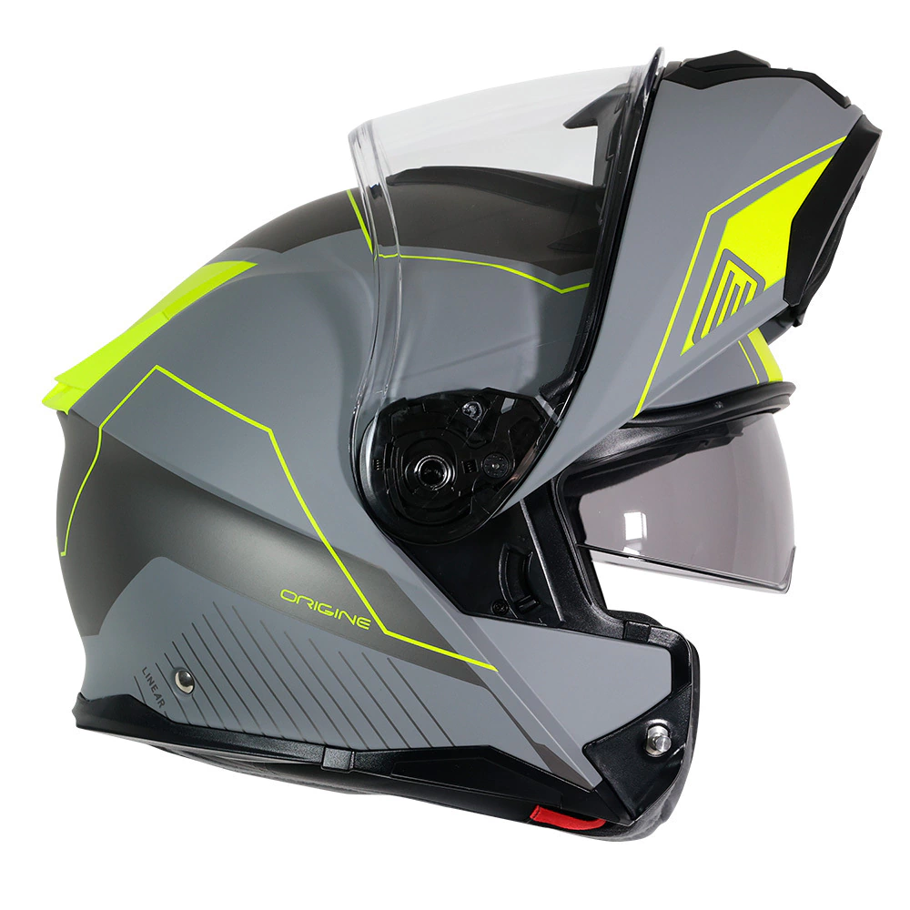 En Motosports, Córdoba Capital, te ofrecemos el Origine LOGIC Linear Fluo Yellow Titanium Matt, un casco modular que combina seguridad, confort y máxima versatilidad. Su diseño en amarillo flúor y titanio mate no solo aporta un estilo único, sino que también mejora la visibilidad en la ruta.